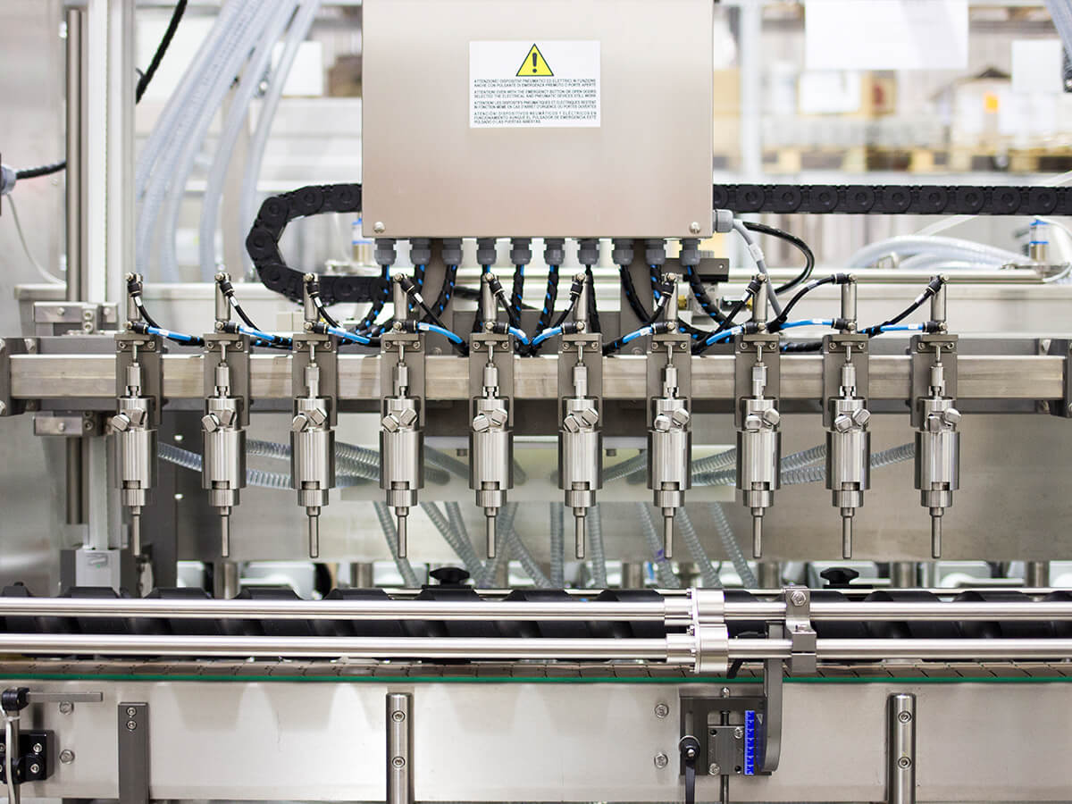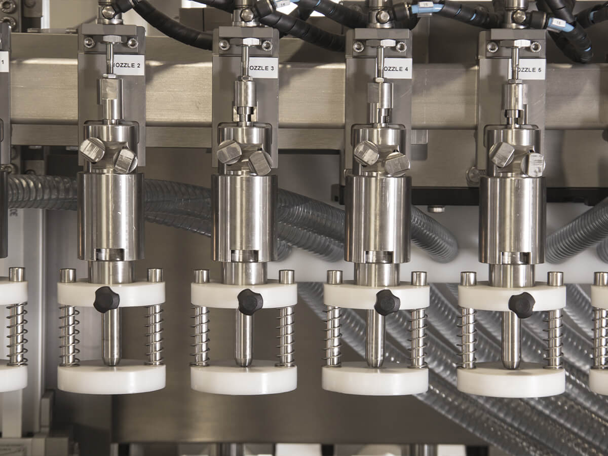 The GUJA linear filling machine is designed for low and medium production volumes, requiring maximum flexibility. It can be equipped with up to 16 nozzles, both in an intermittent configuration or continuous movement cycle: the nozzles are installed on a trolley that follows the worm screw during the filling process.
